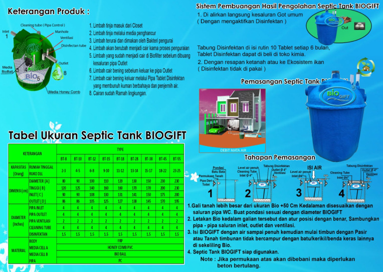 Septic Tank Bio terbaik dengan merk Biotech Gift Type BFS series ini diproduk dengan tahapan media proses yang mampu mengubah limbah menjadi layak buang.
