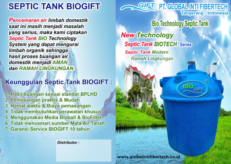 Septic Tank Bio terbaik dengan merk Biotech Gift Type BFS series ini diproduk dengan tahapan media proses yang mampu mengubah limbah menjadi layak buang.