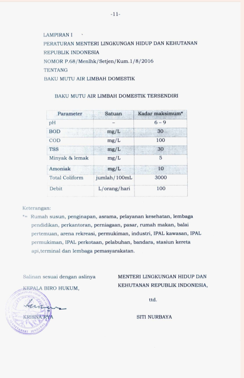 Semuanya itu akan dibuktikan dengan harus ada laporan per triwulan atau 3 bulan sekali mesti di lakukan tes laboratorium lingkungan hidup yang hasilnya harus sesuai dengan baku mutu yang ditentukan, dibawah ini kami lampirkan baku mutu yang harus di ikuti atau di patuhi setiap pelaku usaha yang membuang air limbah.